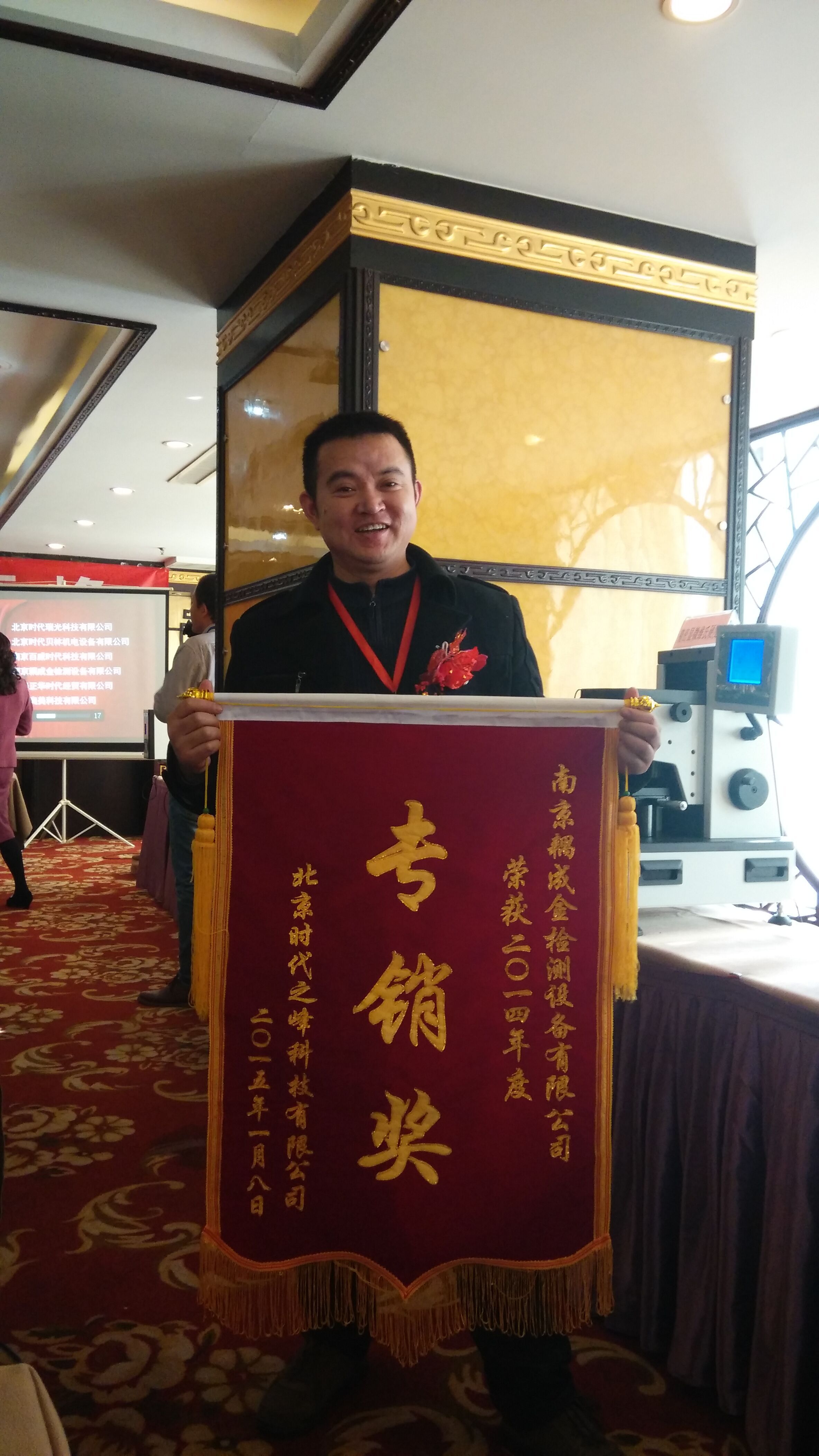 南京耦成金檢測設(shè)備有限公司,立足江蘇,專做北京時代集團(tuán)的產(chǎn)品:包括濟(jì)南試金集團(tuán)的液壓萬能試驗機(jī)、電子萬能試驗機(jī)等;濟(jì)南試金儀器的彈簧試驗機(jī)、沖擊試驗機(jī)等;北京時代集團(tuán)的里氏硬度計、粗糙度儀、超聲波探傷儀等,成績斐然。時代公司特發(fā)此獎。