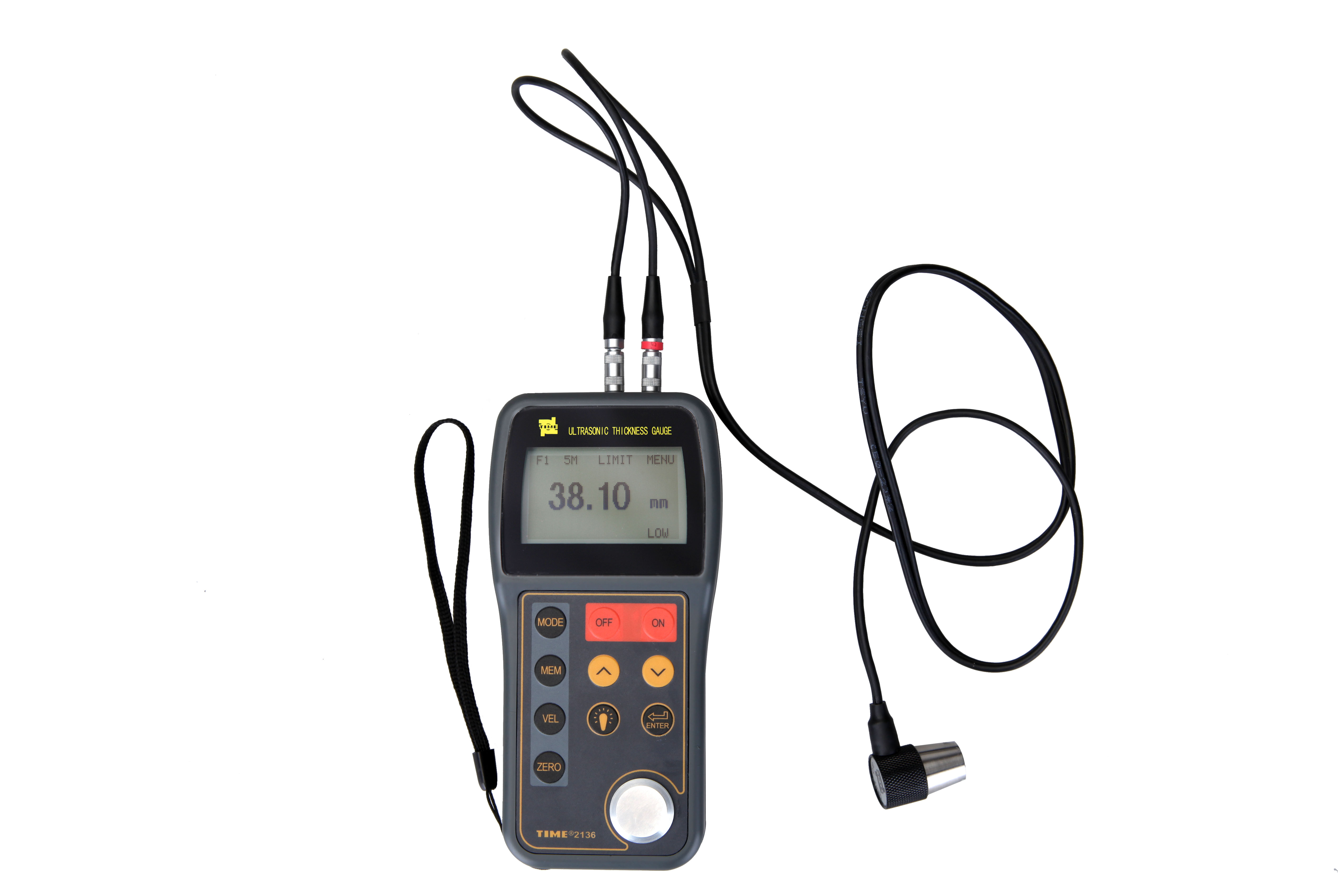 標(biāo)準(zhǔn)配置: 主機(jī)、5MHz探頭、4mm鋼校標(biāo)塊,AA型堿性電池,耦合劑、主機(jī)保護(hù)套。 可選附件: 通訊線纜、 TA230打印機(jī)、2MHz探頭、10MHz探頭、標(biāo)準(zhǔn)試塊。 產(chǎn)品概述: TIME®2136超聲波測(cè)厚儀測(cè)量厚度的原理與光波測(cè)量原理相似。探頭發(fā)射的超聲波脈沖到達(dá)被測(cè)物體并在物體中傳播,到達(dá)材料分界面時(shí)被反射回探頭,通過(guò)精確測(cè)量超聲波在材料中傳播的時(shí)間來(lái)確定被測(cè)材料的厚度。背光顯示適合在光線不好的環(huán)境中進(jìn)行測(cè)量。開(kāi)啟E-E(回波-回波)模式,即可直接切換至隔漆測(cè)厚功能。 產(chǎn)品用途: TIME®2136超聲波測(cè)厚儀采用超聲波測(cè)量原理,適用于能使超聲波以一恒定速度在其內(nèi)部傳播,并能從其背面得到反射的各種材料厚度的測(cè)量。此儀器可對(duì)各種板材和各種加工零件作精確測(cè)量,另一重要方面是可以對(duì)生產(chǎn)設(shè)備中各種管道和壓力容器進(jìn)行監(jiān)測(cè),監(jiān)測(cè)它們?cè)谑褂眠^(guò)程中受腐蝕后的減薄程度?蓮V泛應(yīng)用于石油、化工、冶金、造船、航空、航天等各個(gè)領(lǐng)域。TIME®2136超聲波測(cè)厚儀是時(shí)代集團(tuán)推出的最新一代便攜式超聲波測(cè)厚儀。它采用雙晶探頭多重回波“穿透涂層”的測(cè)量方式,無(wú)需去除測(cè)量點(diǎn)處的涂層,為用戶節(jié)約時(shí)間和成本。功能特點(diǎn): ● 自動(dòng)識(shí)別標(biāo)配探頭 ,或手動(dòng)設(shè)置探頭頻率。● 雙晶探頭,多重回波“穿透涂層”的測(cè)量方式。